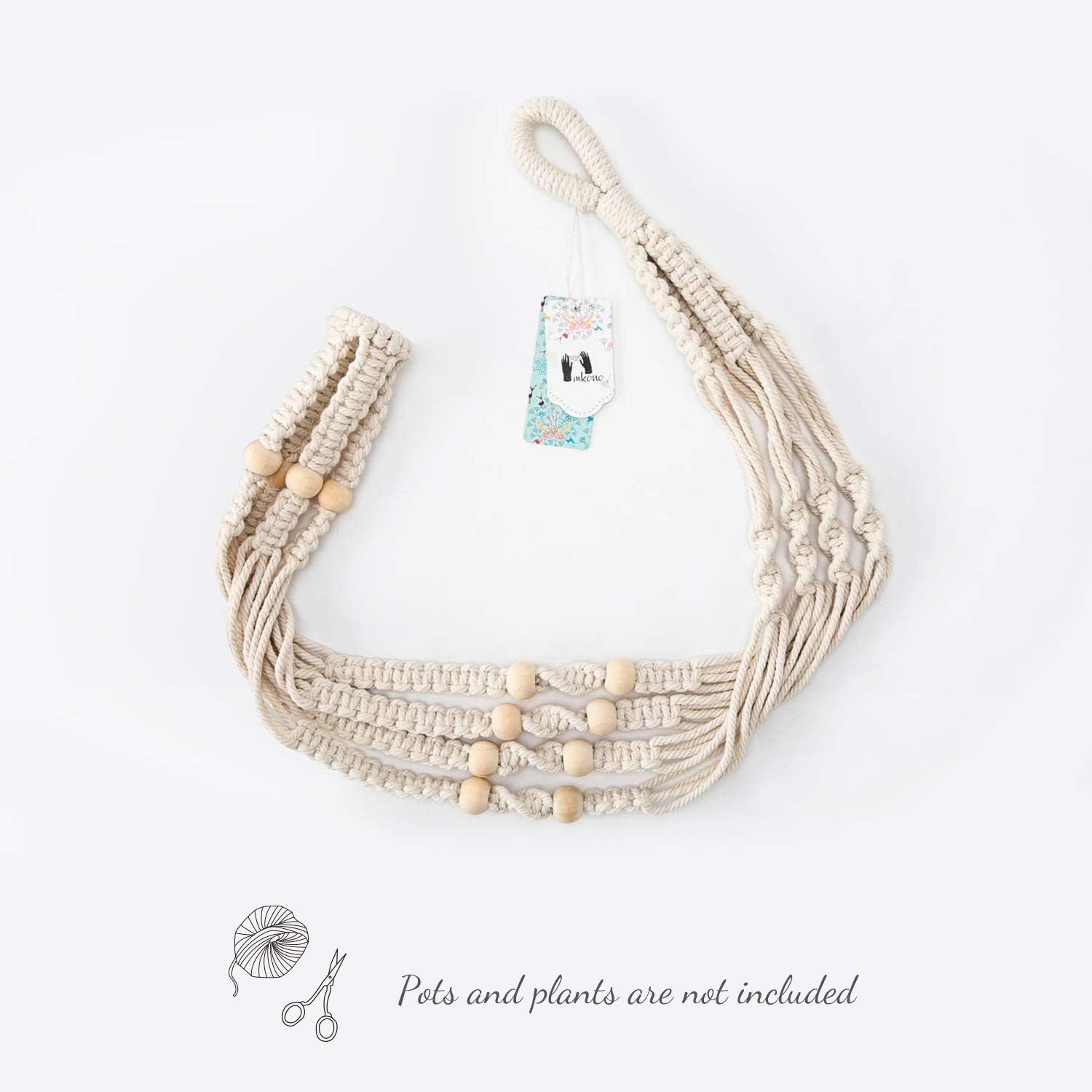 Add a touch of boho charm to your space with this ivory hanging planter. Featuring decorative wood beads and a tassel free design, it’s perfect for displaying flowers, herbs, or trailing plants indoors or outdoors. Pot not included.